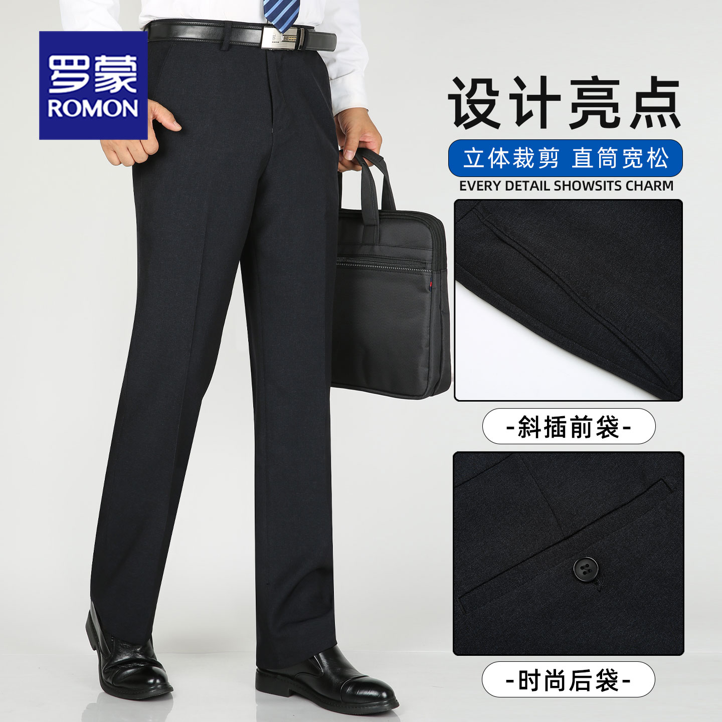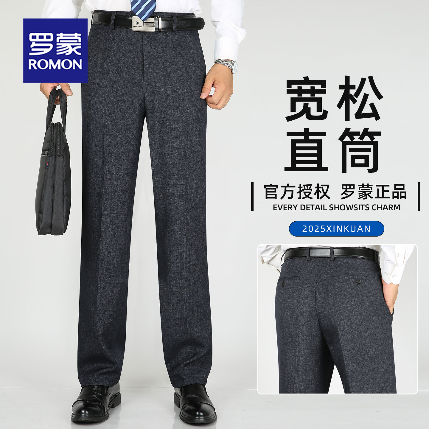 罗蒙中老年男士西裤秋冬高腰宽松直筒裤商务休闲西装裤加绒爸爸裤