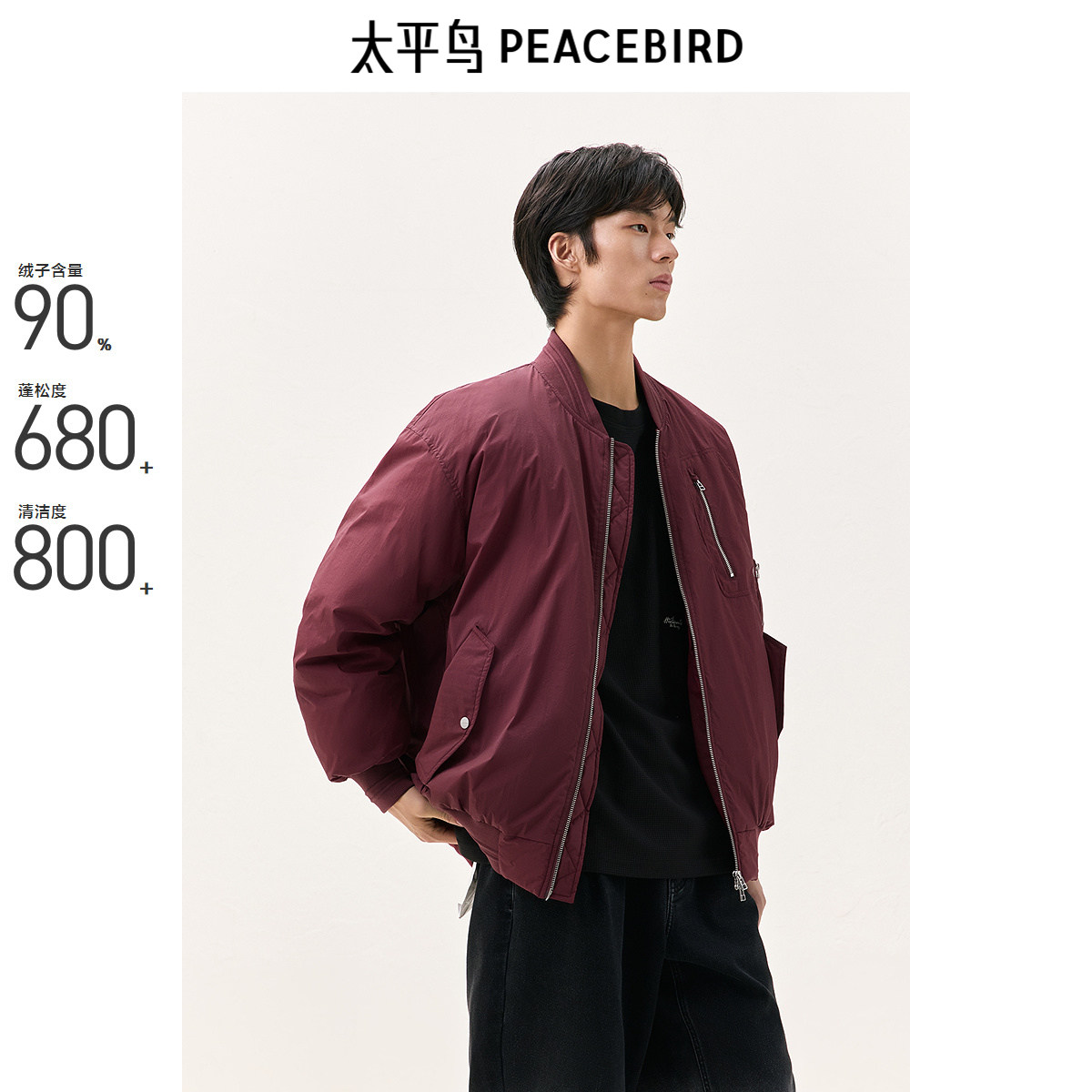 太平鸟男装秋冬新款棒球领羽绒服保暖防寒飞行夹克外套