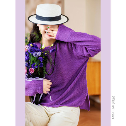 小耳出品【大版好穿!小桂花针!含羊毛】卷边领纯色毛衣减龄上衣