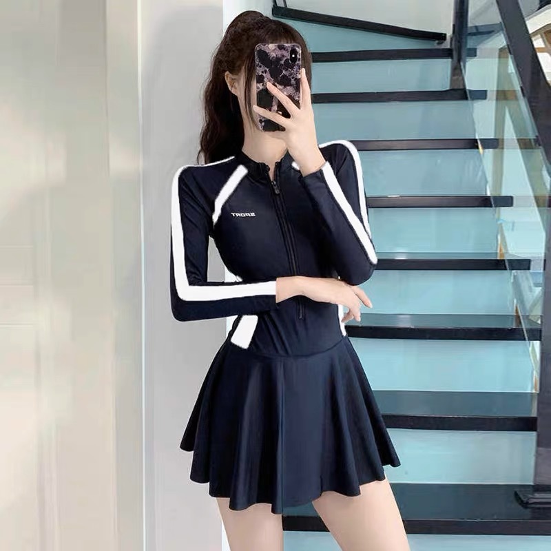 新款游泳衣女运动连体保守显瘦遮肚长袖温泉学生韩国时尚泳装女