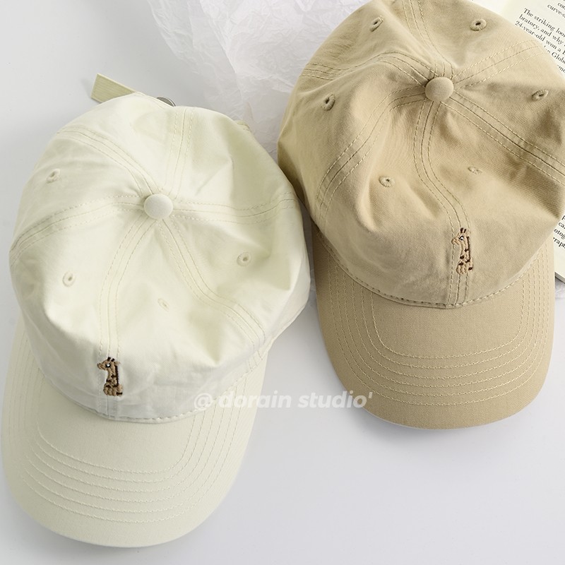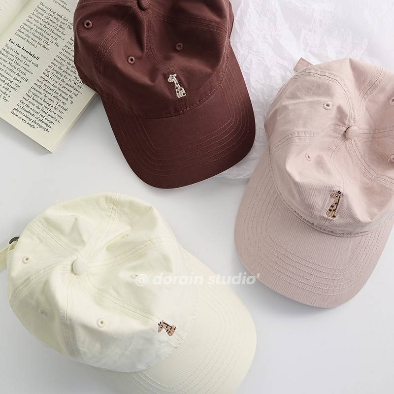长颈鹿刺绣软顶棒球帽女时尚百搭韩版休闲帽子宽帽檐显脸小鸭舌帽