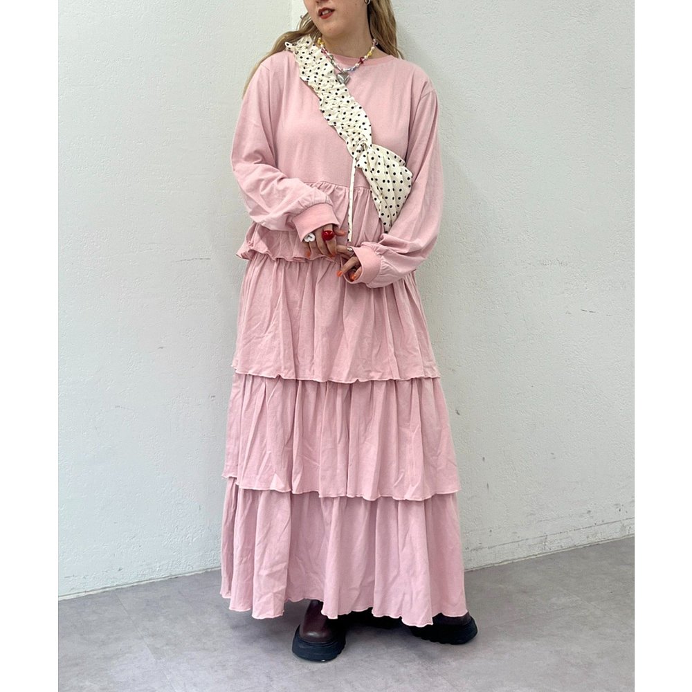 1h可退 日本直邮W closet 女装 宽松T恤感 荷叶边长袖连衣裙 WCZ1