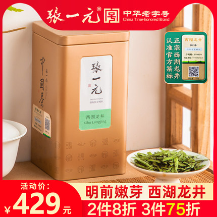 张一元茶叶2025新茶精选一级西湖龙井100g罐装绿茶春茶嫩芽茶叶