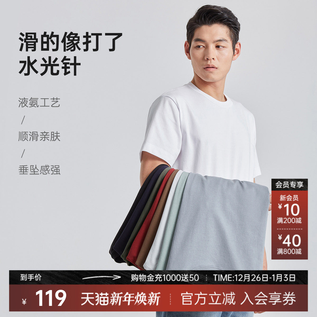利郎官方液氨纯色夏季短袖T恤