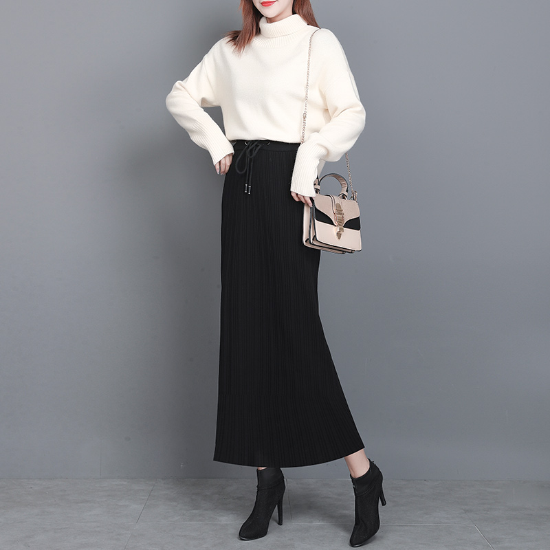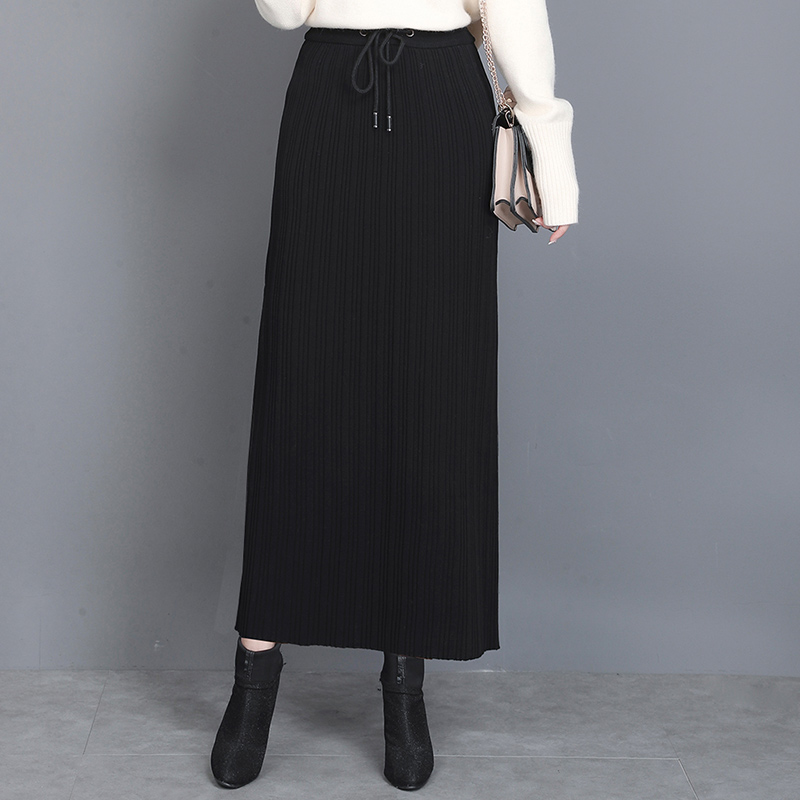 秋冬款半身裙女新款裙子高腰包臀裙黑色显瘦直筒冬季针织半身长裙