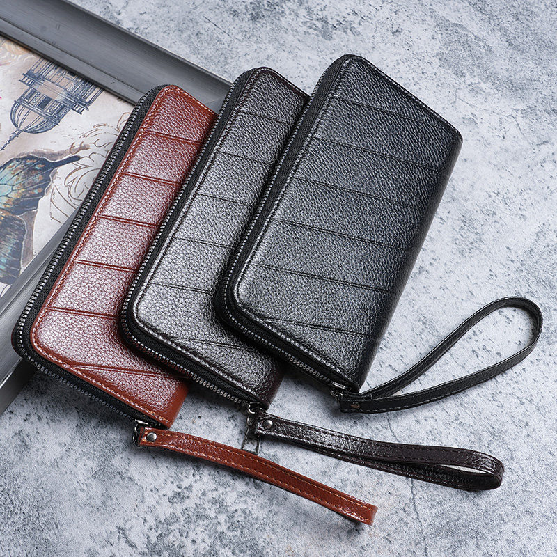 新款复古男士钱包长款时尚压花拉链手拿包多功能青年男式皮夹卡包
