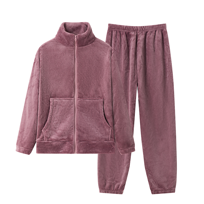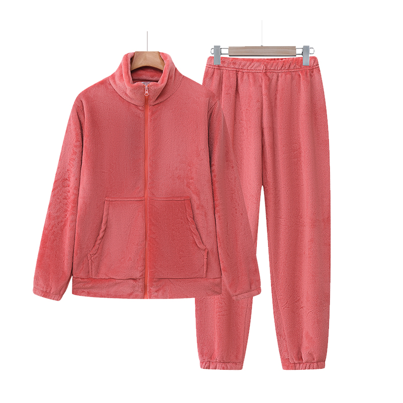 秋冬季珊瑚绒睡衣女冬加厚大码中老年妈妈装女士法兰绒家居服套装