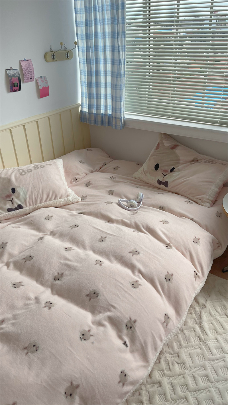 梨梦bobo兔可爱冬季保暖加厚牛奶绒四件套床单被套珊瑚绒床上用品