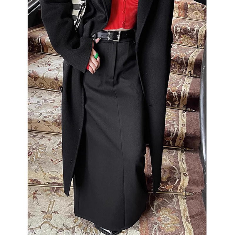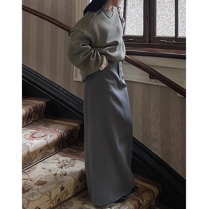 大码灰色长款半身裙女胖妹妹高腰显瘦mm后开叉直筒包臀休闲西装裙
