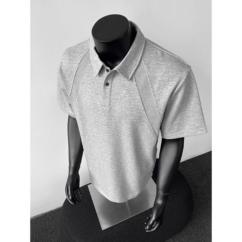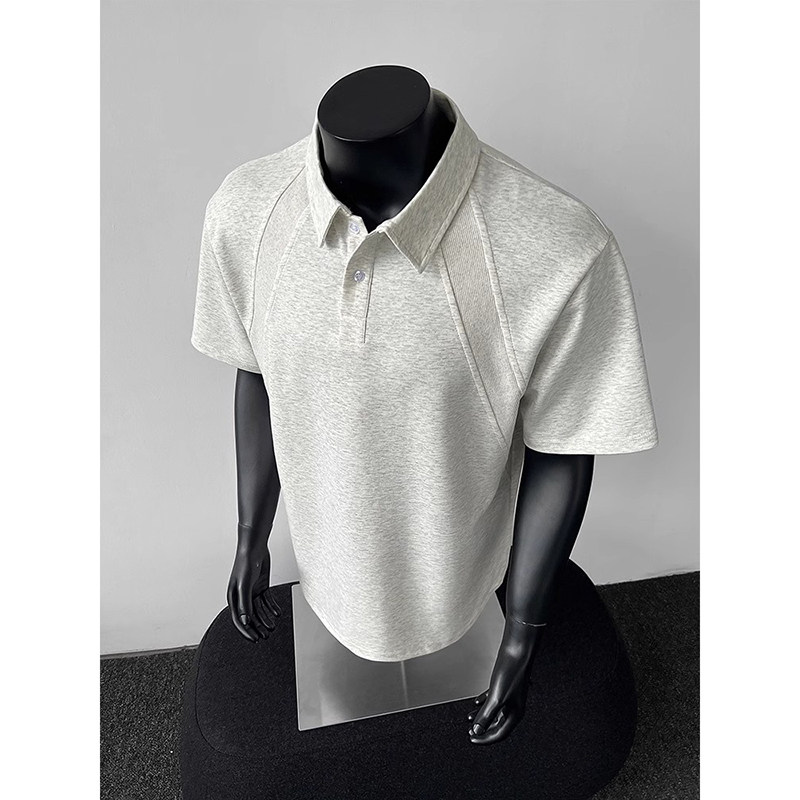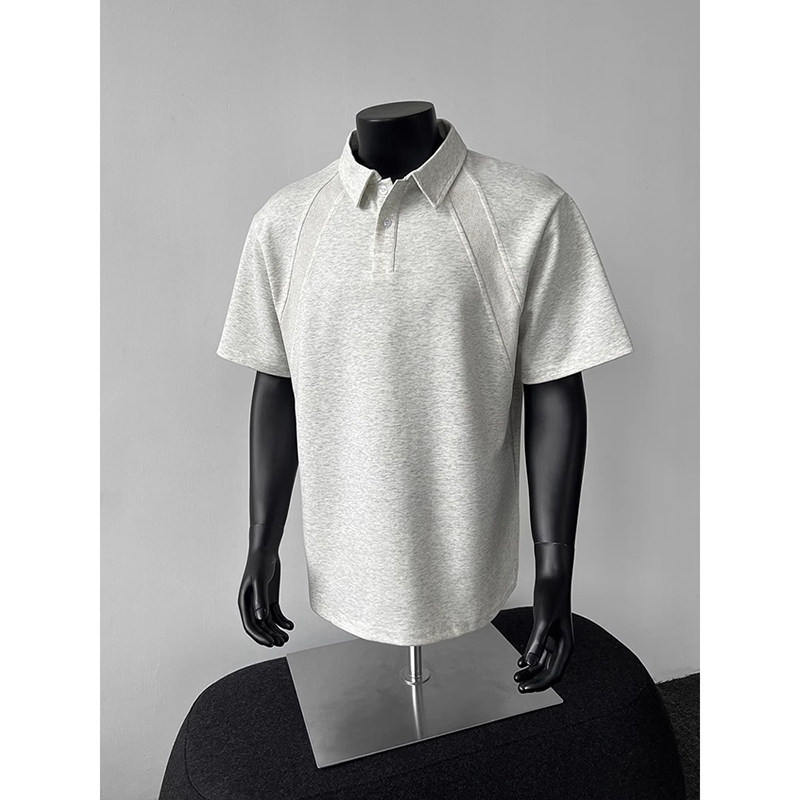 高克重磅太空棉短袖polo衫男款夏季美式boxy版型t恤灰色正肩半袖