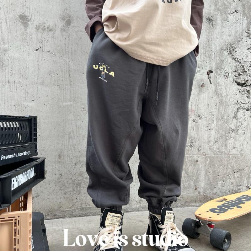 儿童毛圈纯棉休闲裤2025春装男女童校园风户外风运动长裤哈伦裤潮