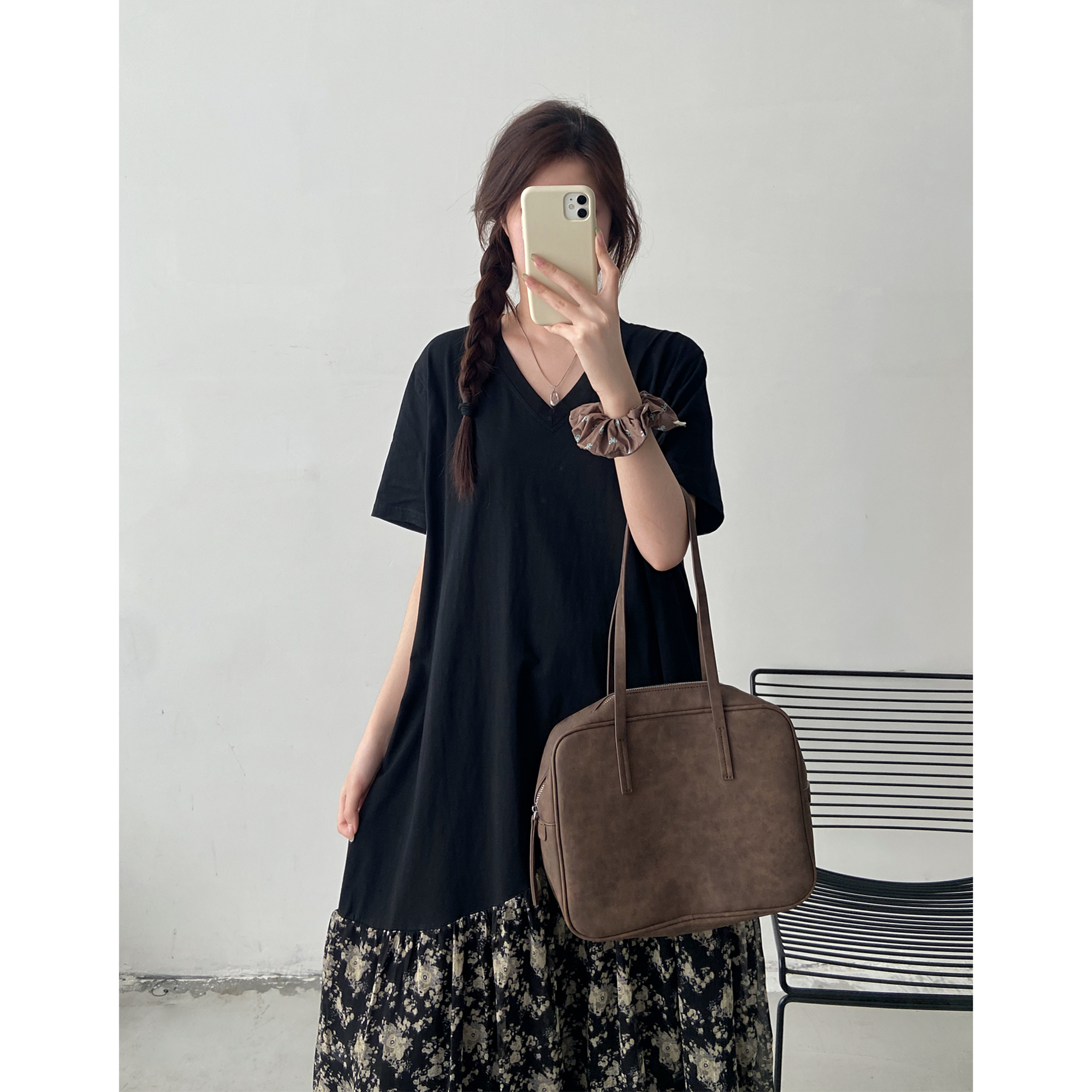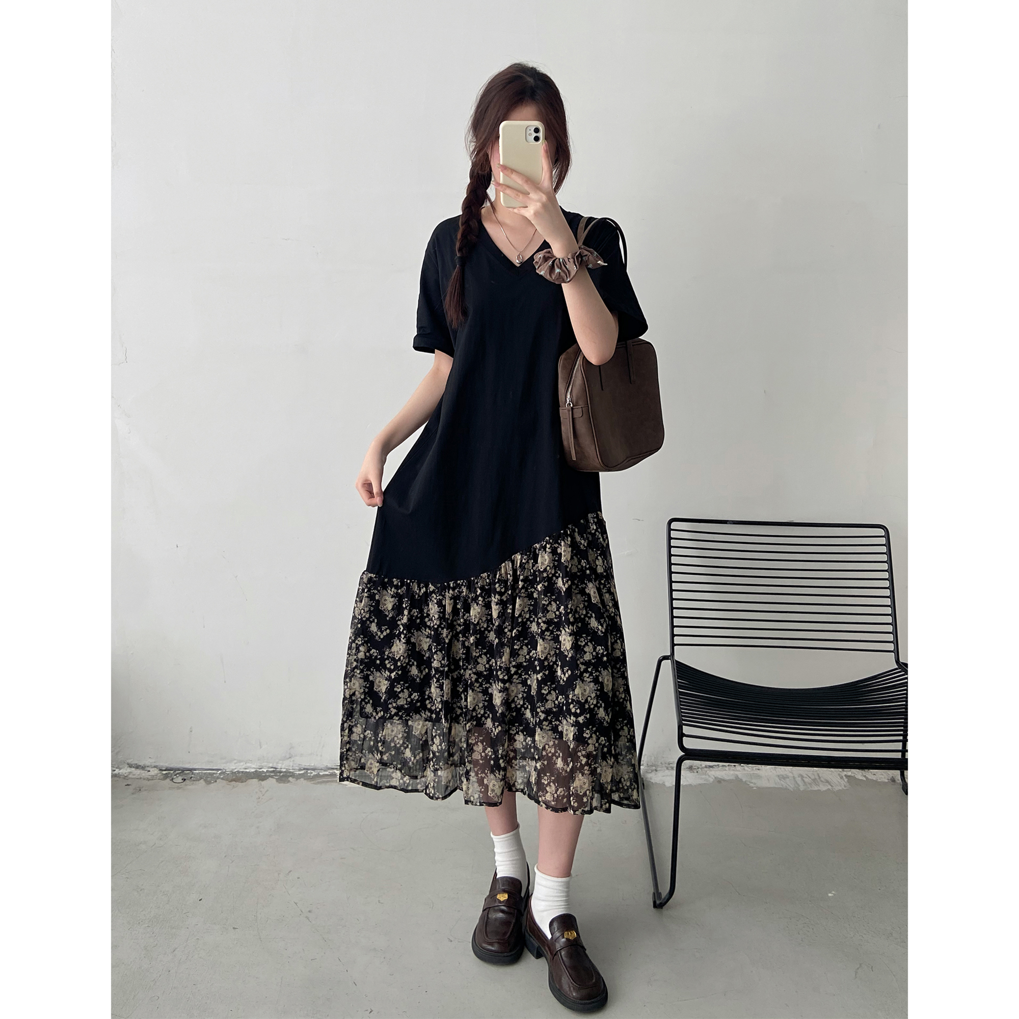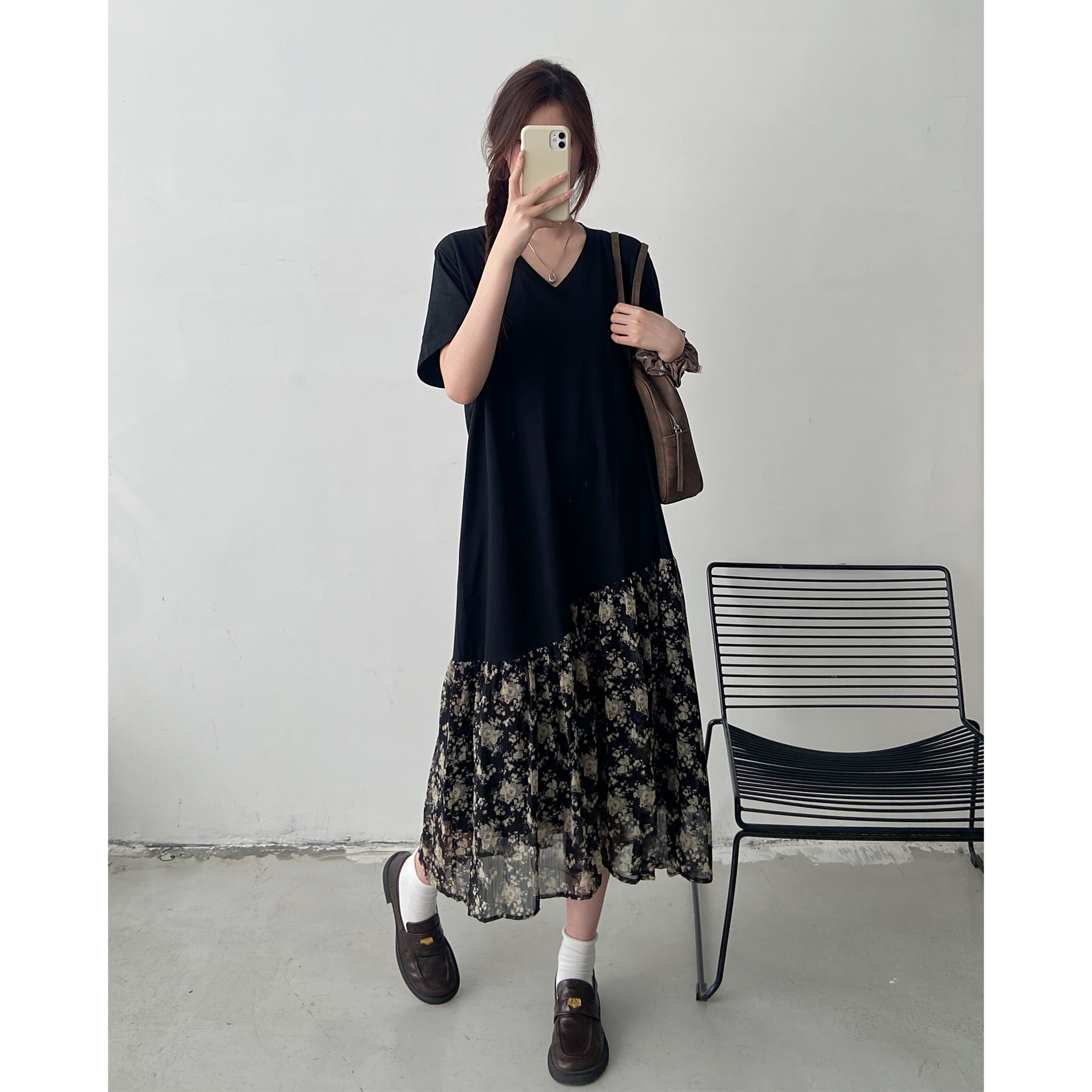 【清仓特价】短袖连衣裙女夏季胖mm宽松遮肉长款过膝v领裙子