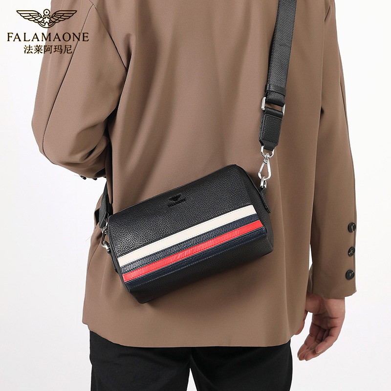 法莱阿玛尼休闲商务男士包包斜挎包真皮时尚单肩包潮牌横款挎包