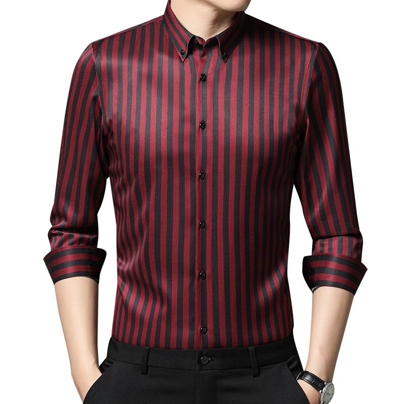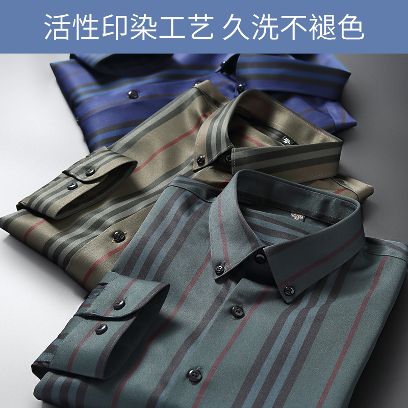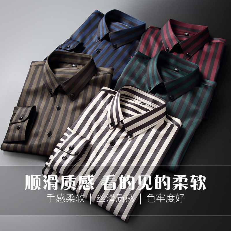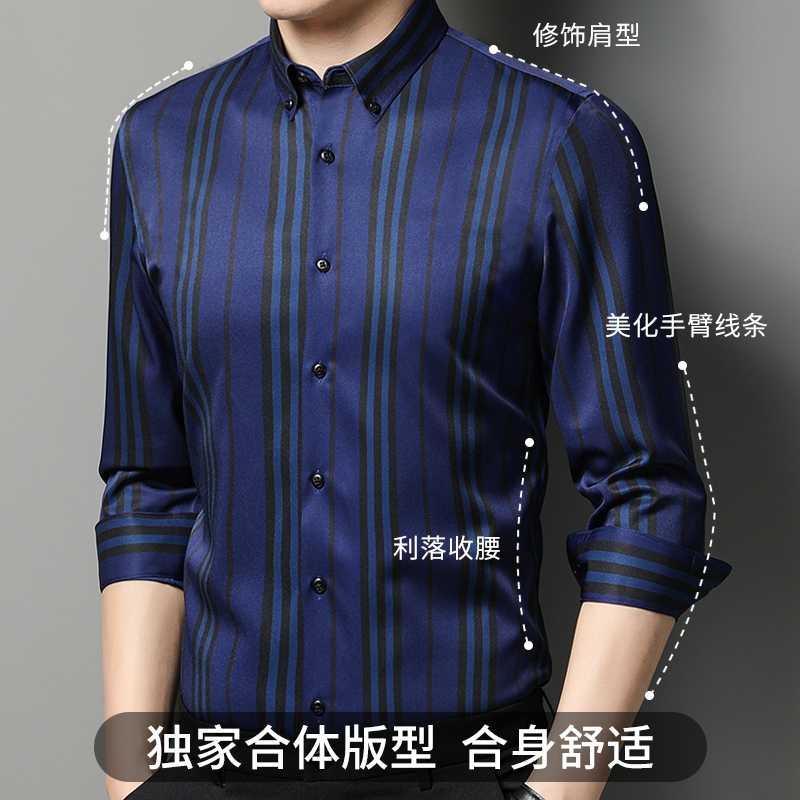2025秋季新款男士条纹衬衫长袖休闲百搭上衣弹力时尚商务休闲寸衣