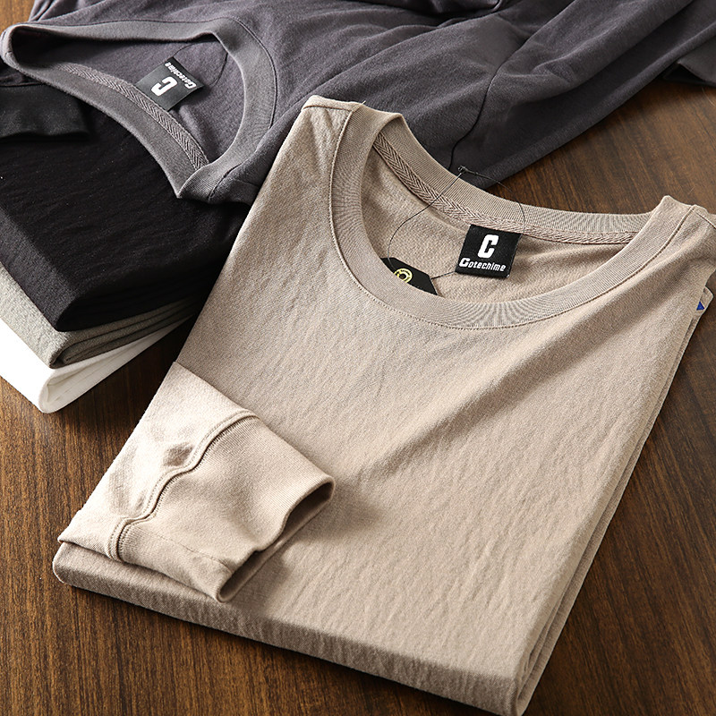 100铜氨丝!高垂感!春夏新款外贸尾货男士轻薄丝滑圆领长袖T恤