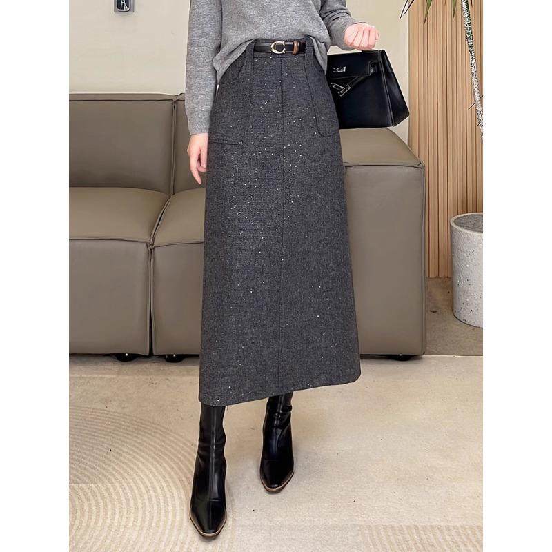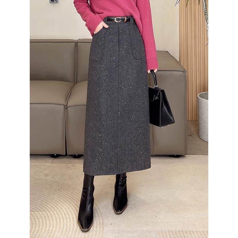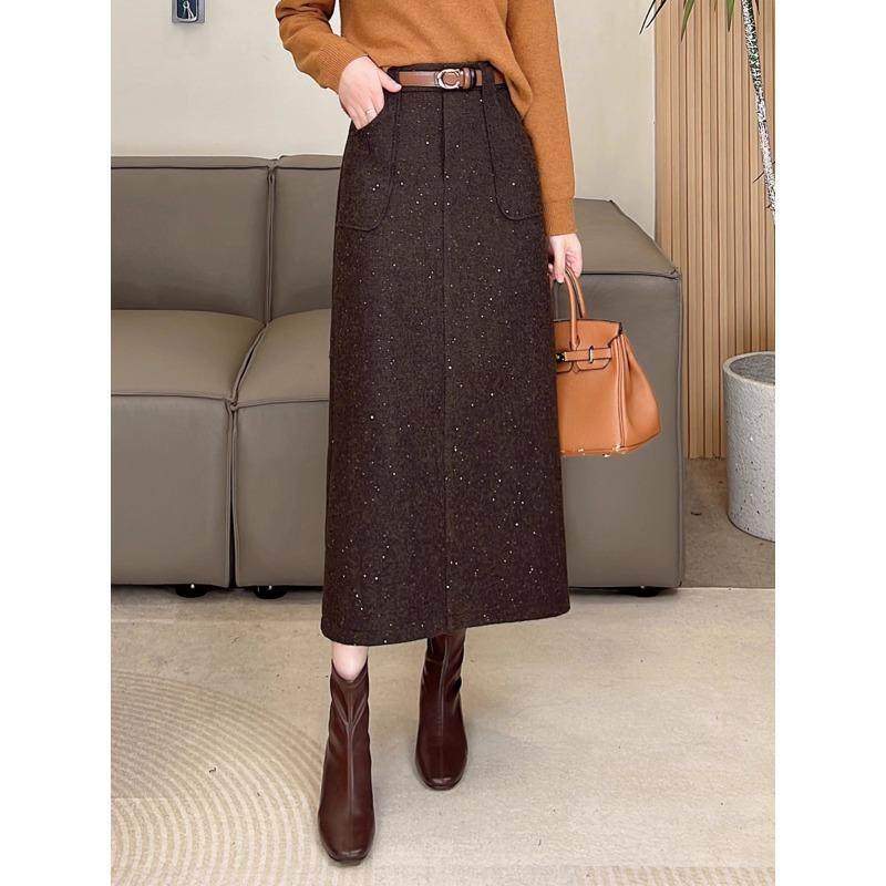 美拉德亮片半身裙女冬季2025新款遮胯显瘦修身百搭通勤职业a字裙