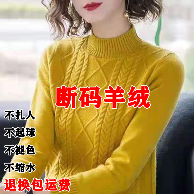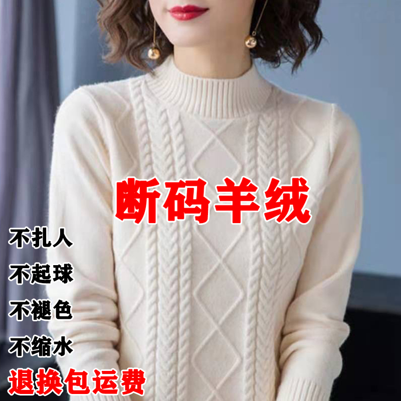 鄂尔多斯市100%羊毛衫女中年半高领秋冬加厚羊绒衫内搭毛衣打底衫