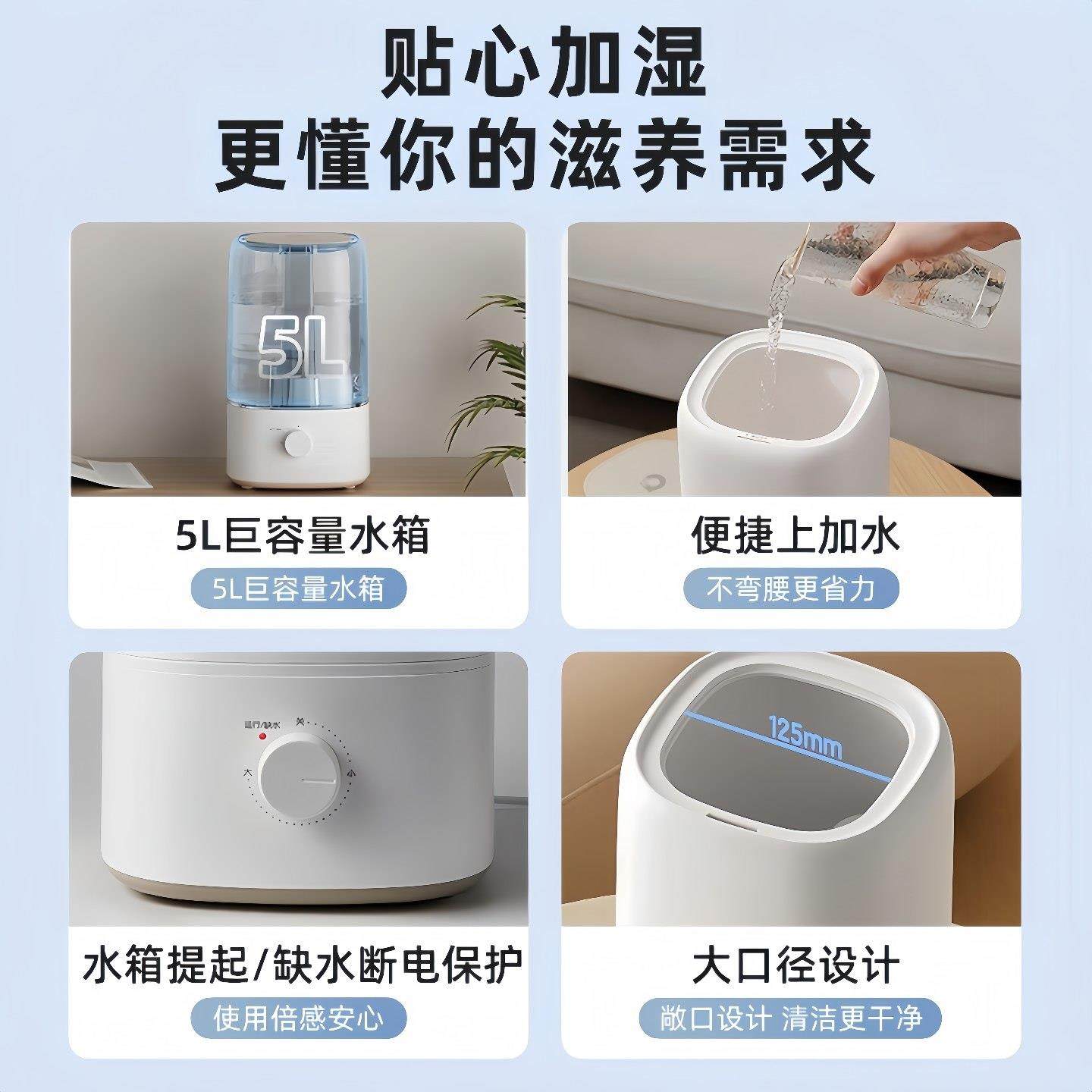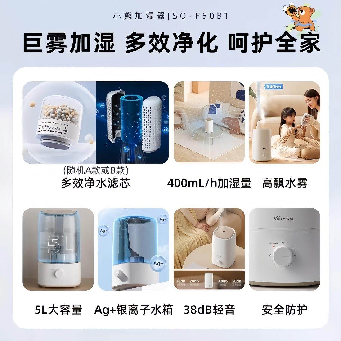 小熊加湿器家用卧室空调孕妇婴儿低轻音桌面上加水小型大雾量香薰