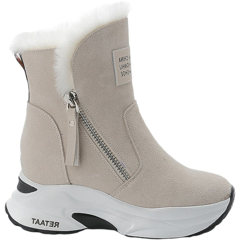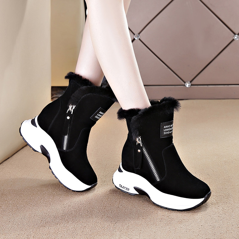 2025新款冬季雪地靴女加绒时尚真皮内增高厚底防滑棉鞋女毛毛鞋子