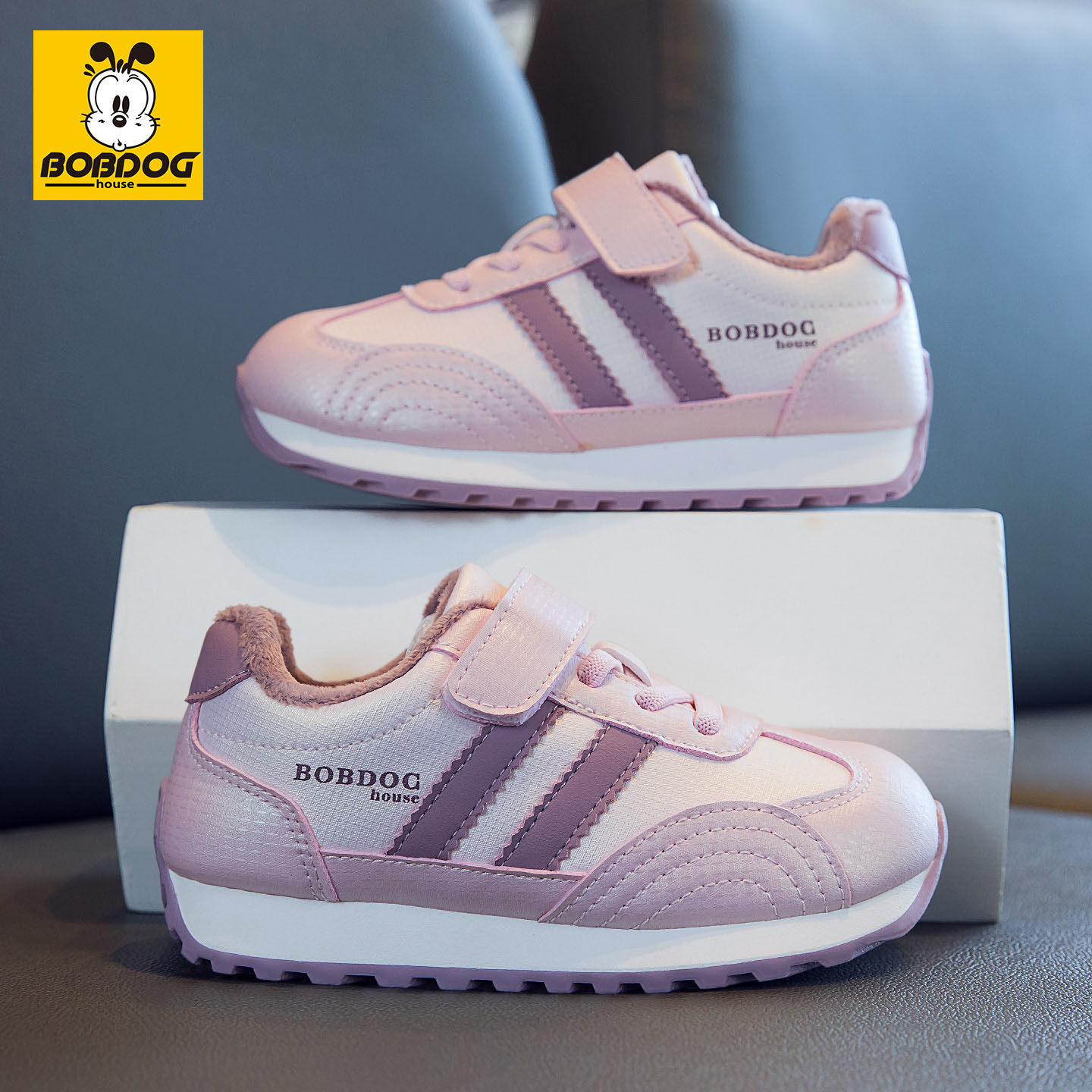 巴布豆女童运动鞋2025秋冬新款二棉阿甘鞋加绒防滑软底休闲鞋棉鞋