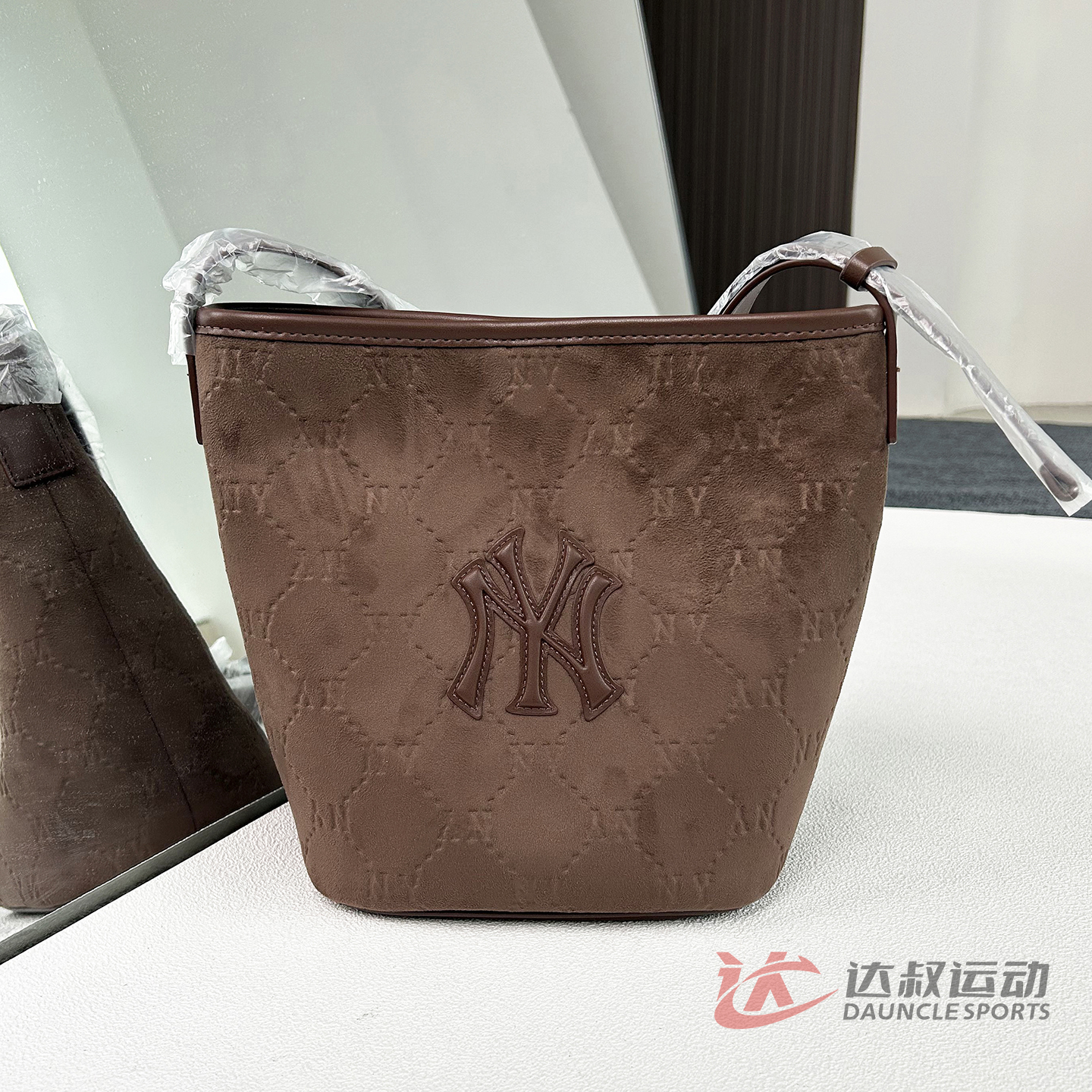 MLB男女NY钻石暗纹老花水桶包