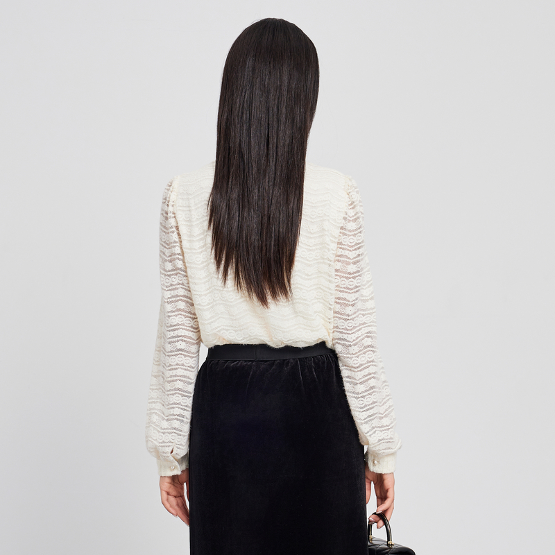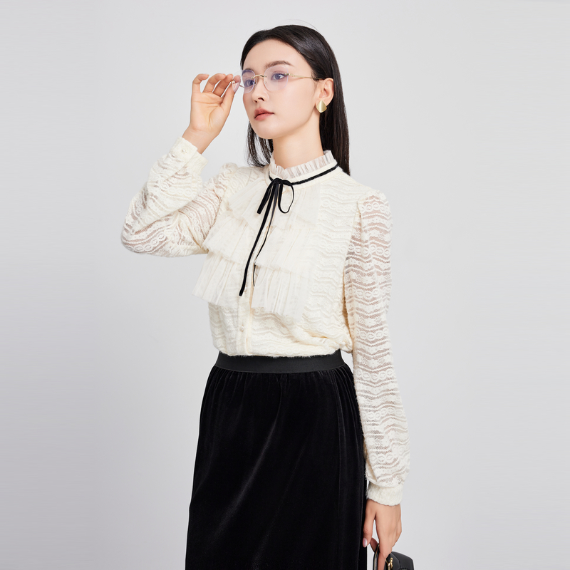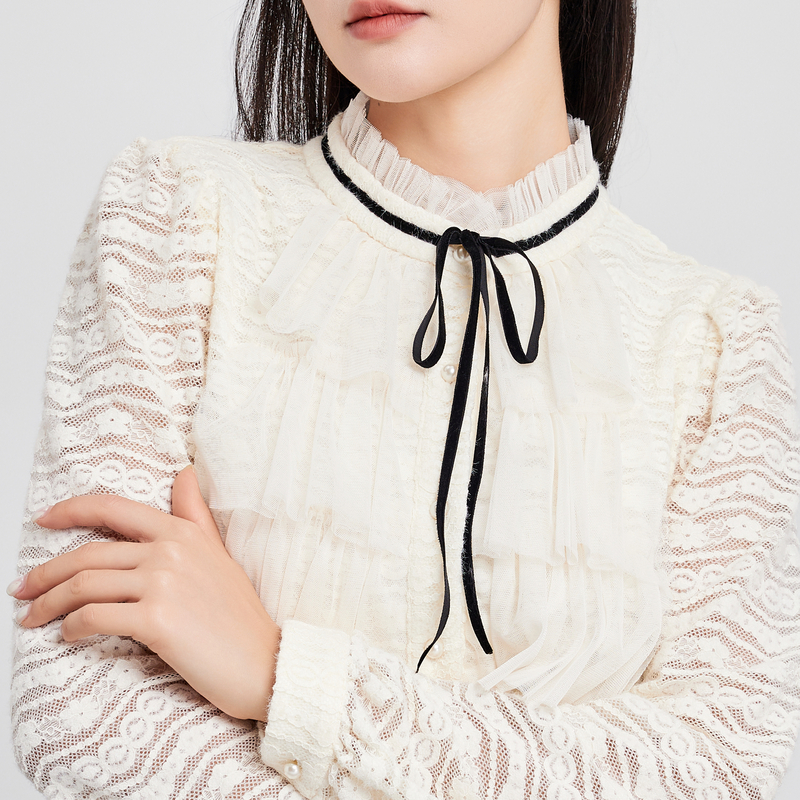 鲁思蒂蕾丝长袖打底衬衫设计感