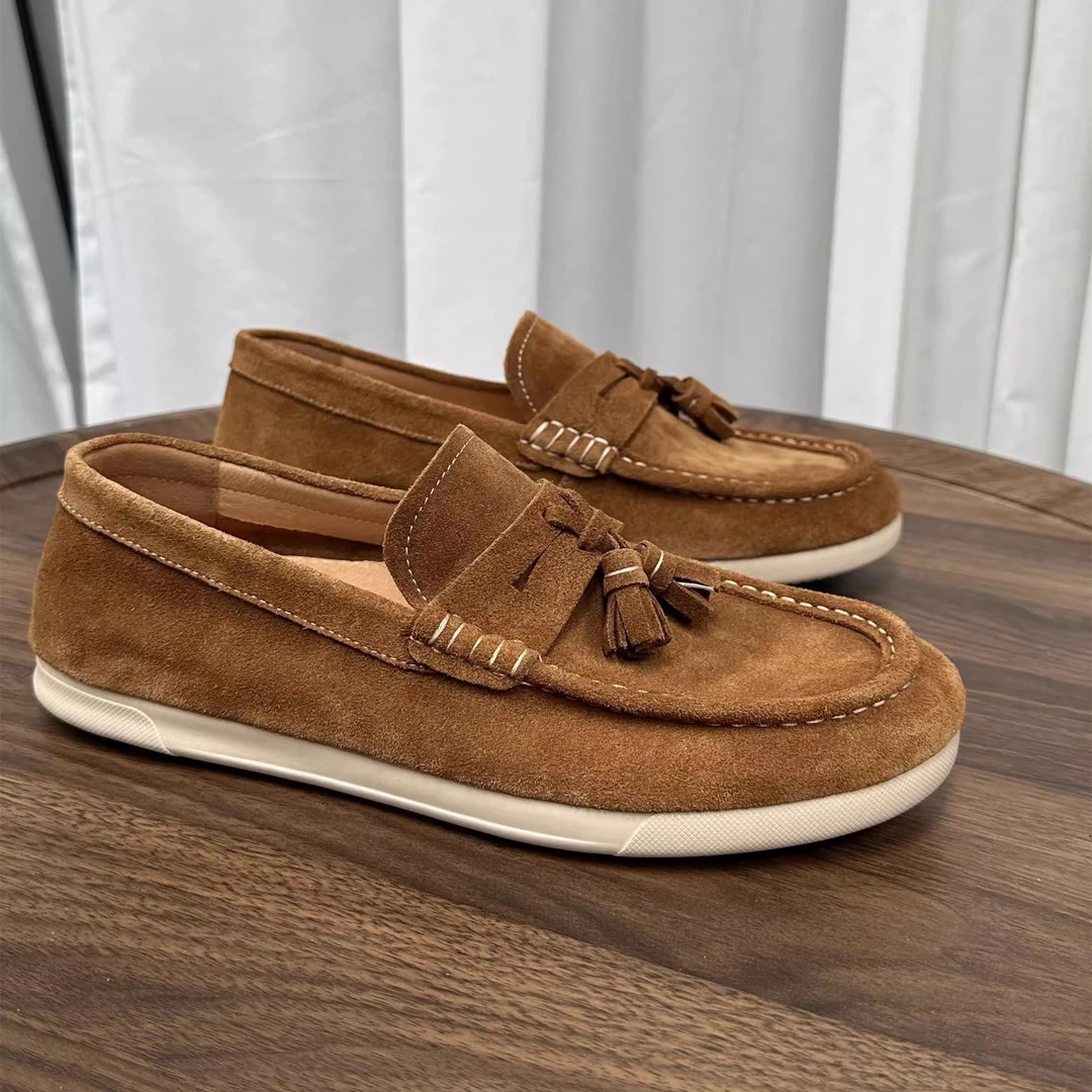 休闲男鞋懒人一脚蹬乐福鞋男士韩版反绒皮豆豆鞋透气软底鞋250620