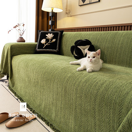 蔓越家 中古风高级感沙发巾雪尼尔客厅沙发套罩布防猫抓四季通用
