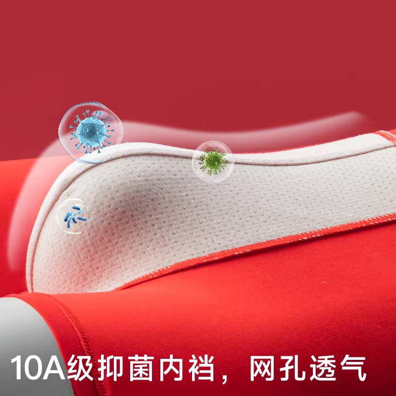 莫代尔男士红内裤男本命年桑蚕丝抗菌裆大红色马年平角裤头 3条装