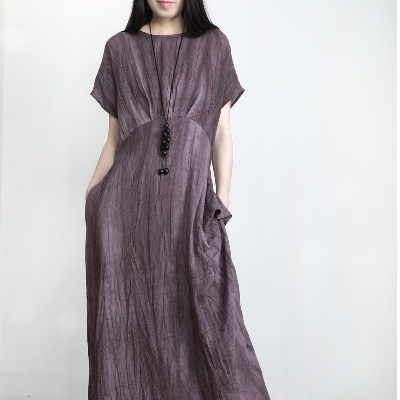 兮风春夏禅意气质亚麻连衣裙宽松系带多穿法佛系长裙小众个性褶皱