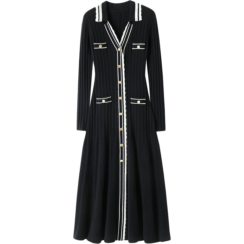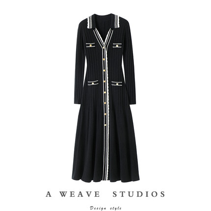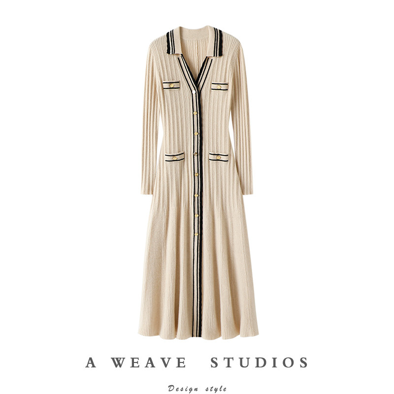 内外兼修贵气感~v领羊绒衫女中长款纯羊绒毛衣针织连衣裙子秋冬