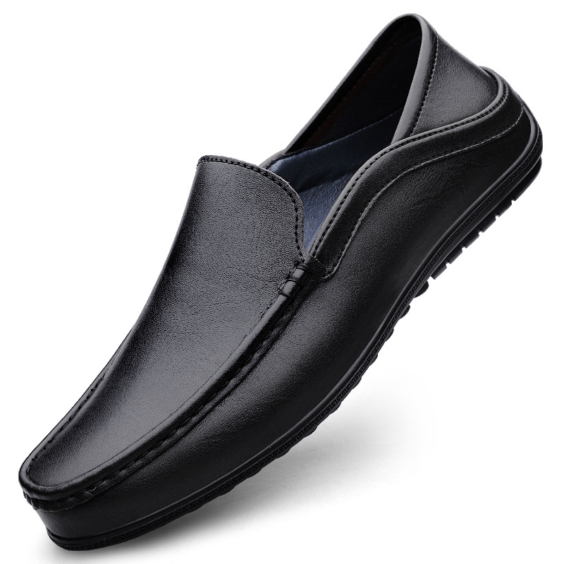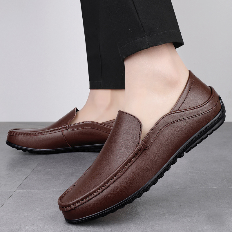 速卖通男鞋新款休闲鞋一脚蹬开车皮鞋男真皮软底透气豆豆鞋子百搭