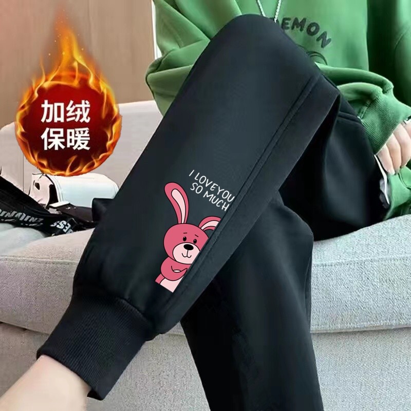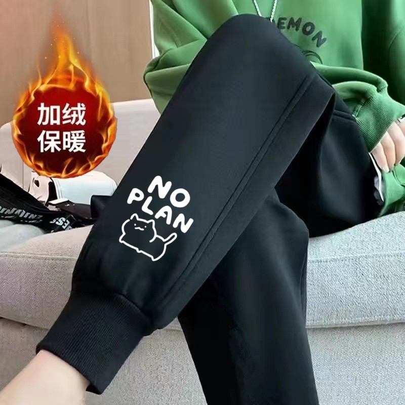 加绒加厚休闲裤女冬季保暖宽松束脚显瘦哈伦裤百搭卫裤爆款运动裤