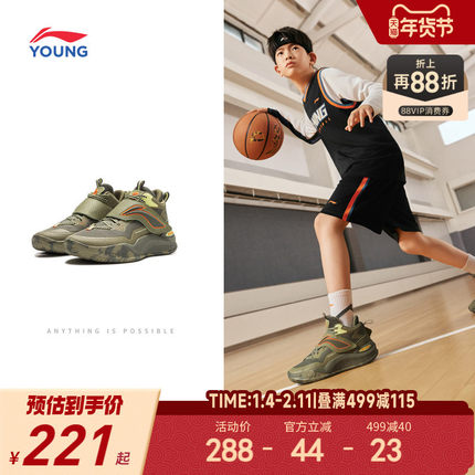 李宁儿童专业篮球鞋疆域V3轻便软底秋冬款男童鞋中大童训练运动鞋