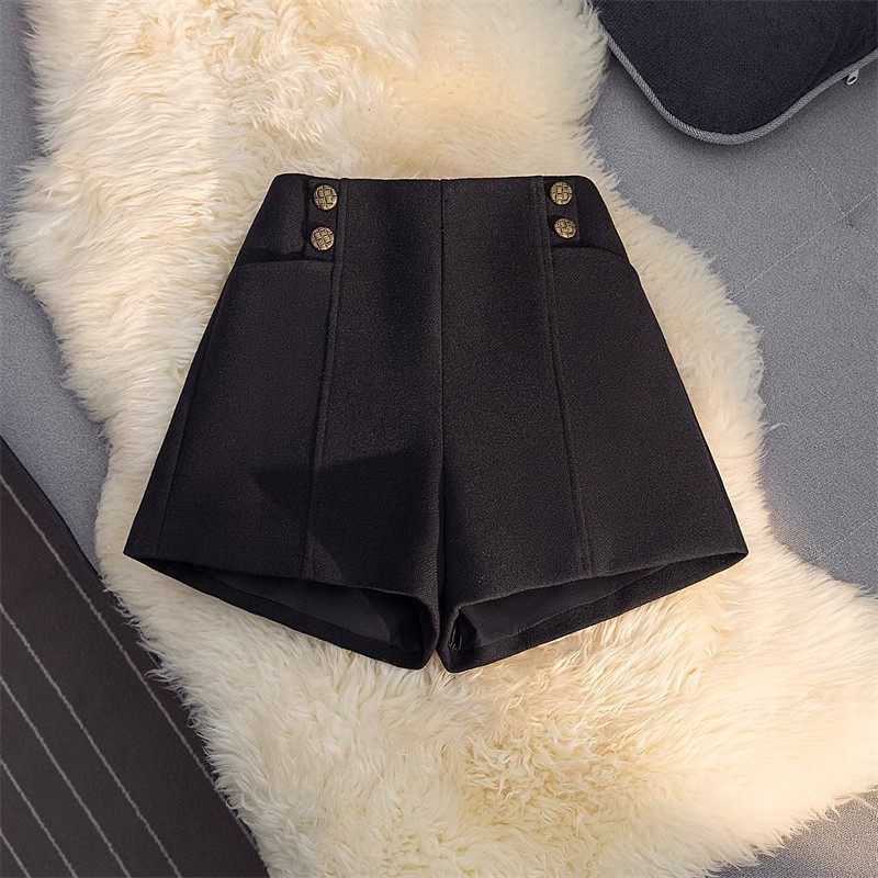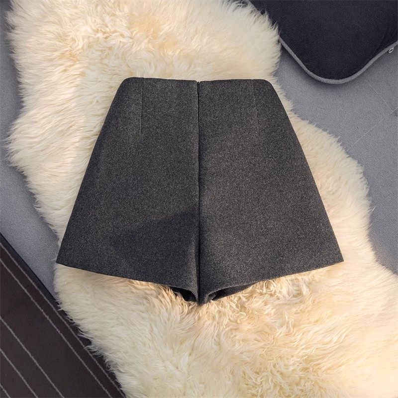 灰色时尚胖mm毛呢短裤2025冬季高腰大码靴裤百搭显瘦A字阔腿裤女