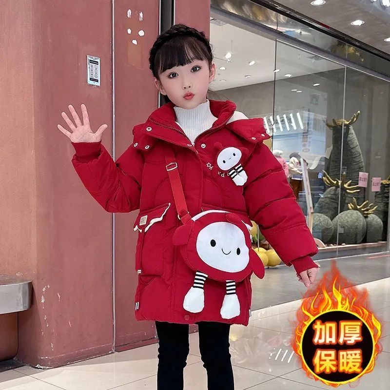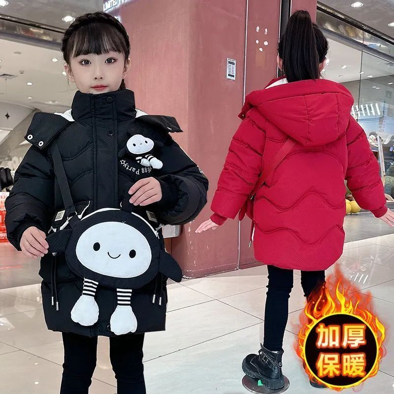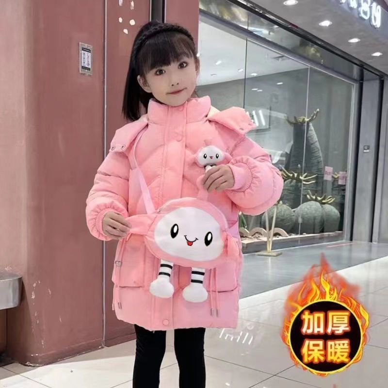 女童冬装羽绒棉衣新款加绒加厚蛋仔棉袄棉服中长款洋气外套送包包