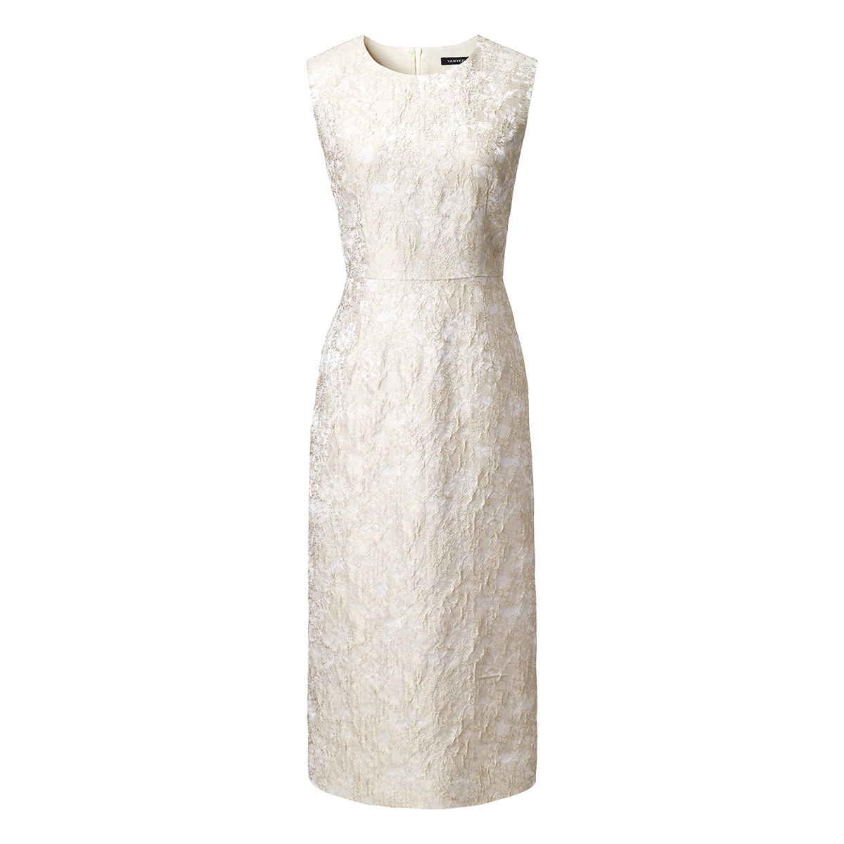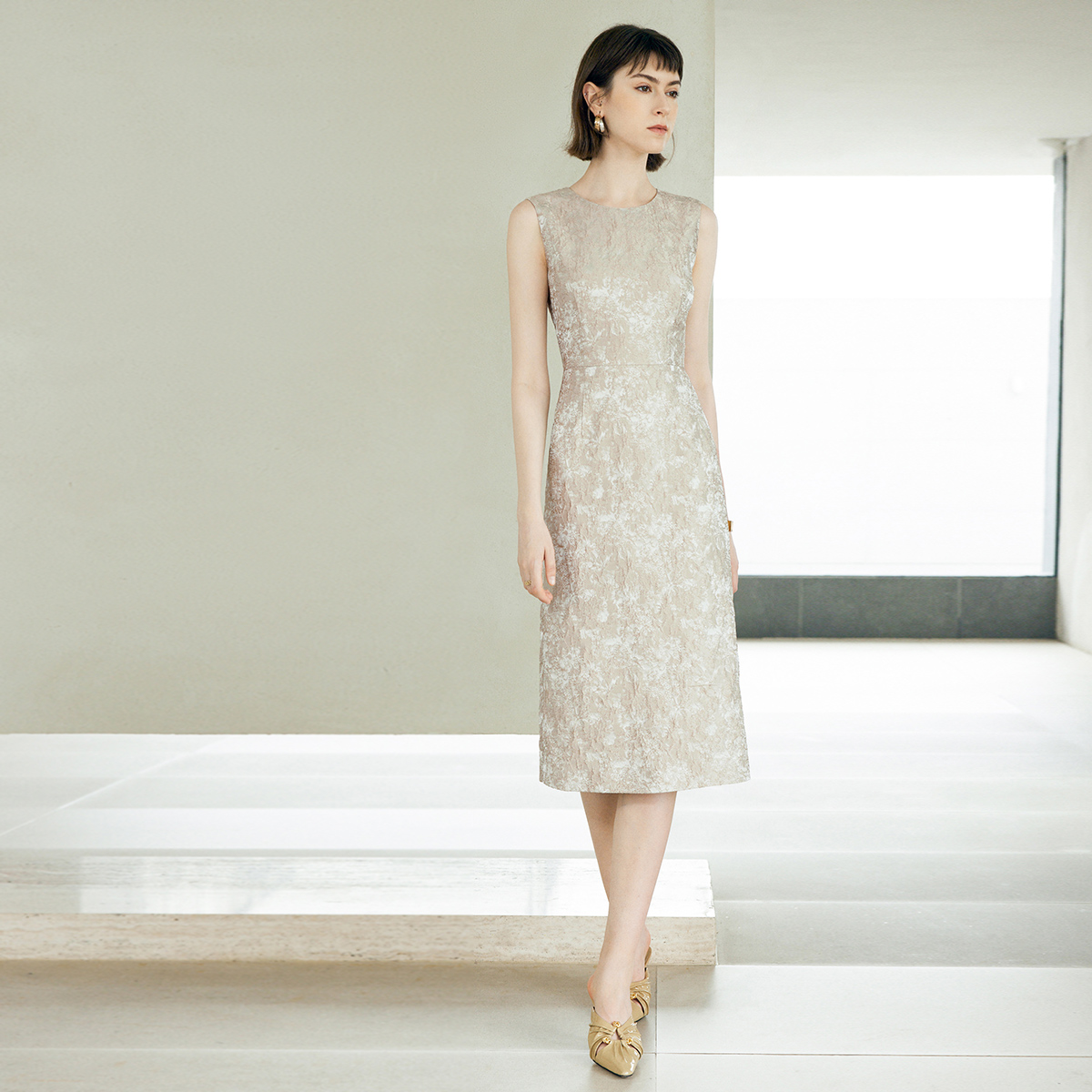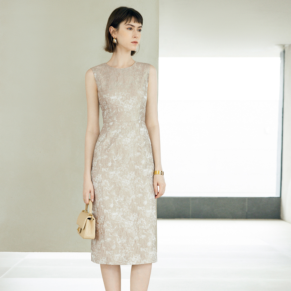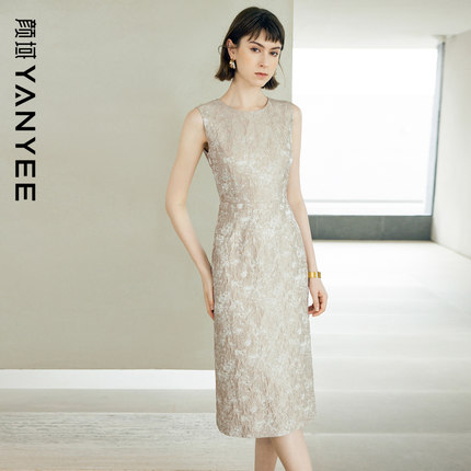 颜域优雅气质提花连衣裙女装2025新款秋季收腰显瘦新中式圆领裙子