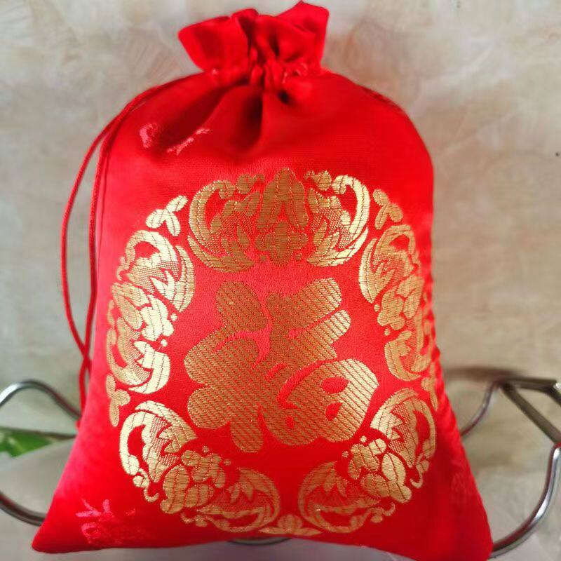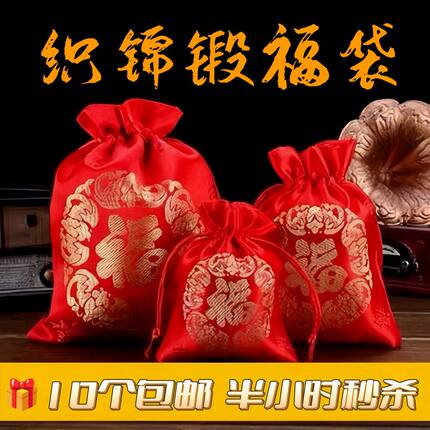 新年福袋空袋红色布袋锦囊袋香囊袋抽绳束口中式织锦缎平安礼品袋