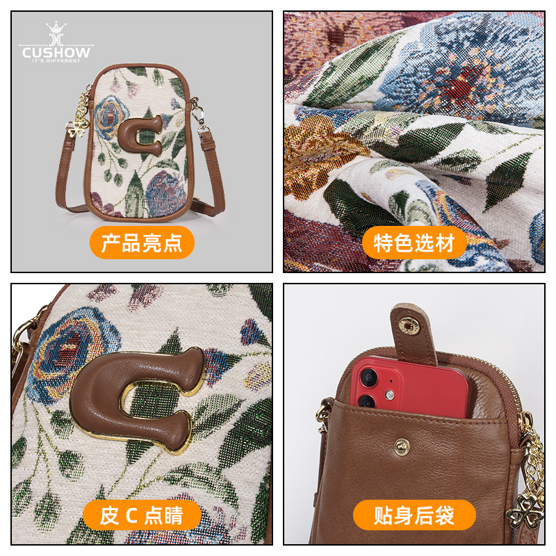 卡秀原创国风真皮斜挎小包