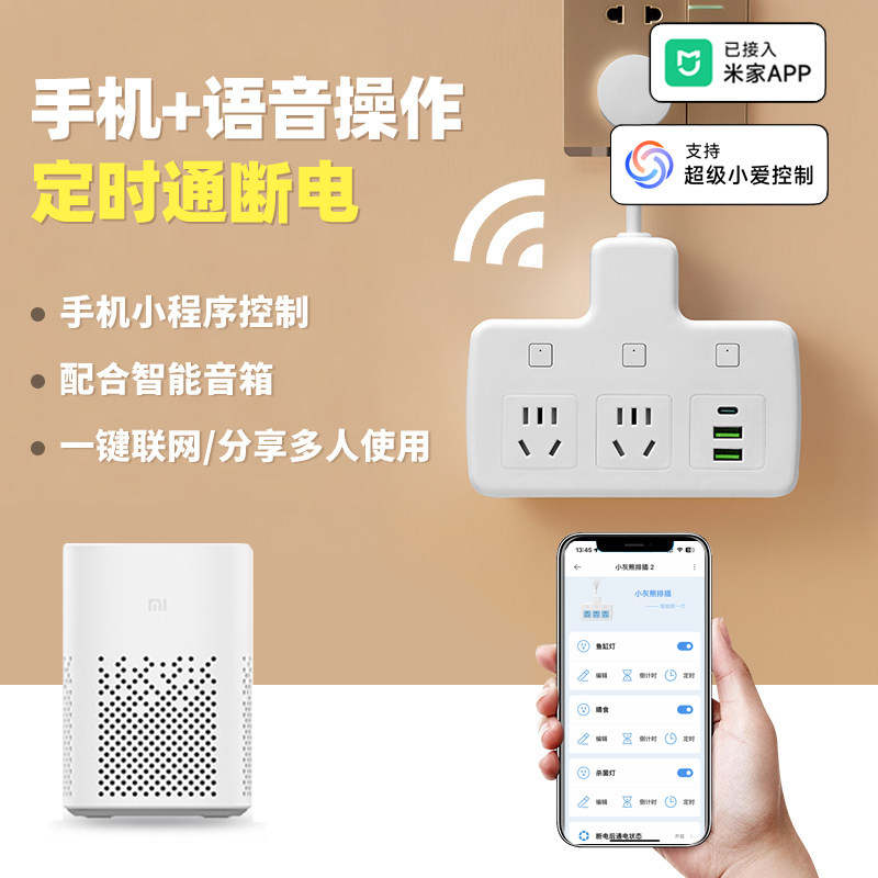 已接入米家APP智能wifi插座手机远程遥控开关排插小爱同学鱼缸灯