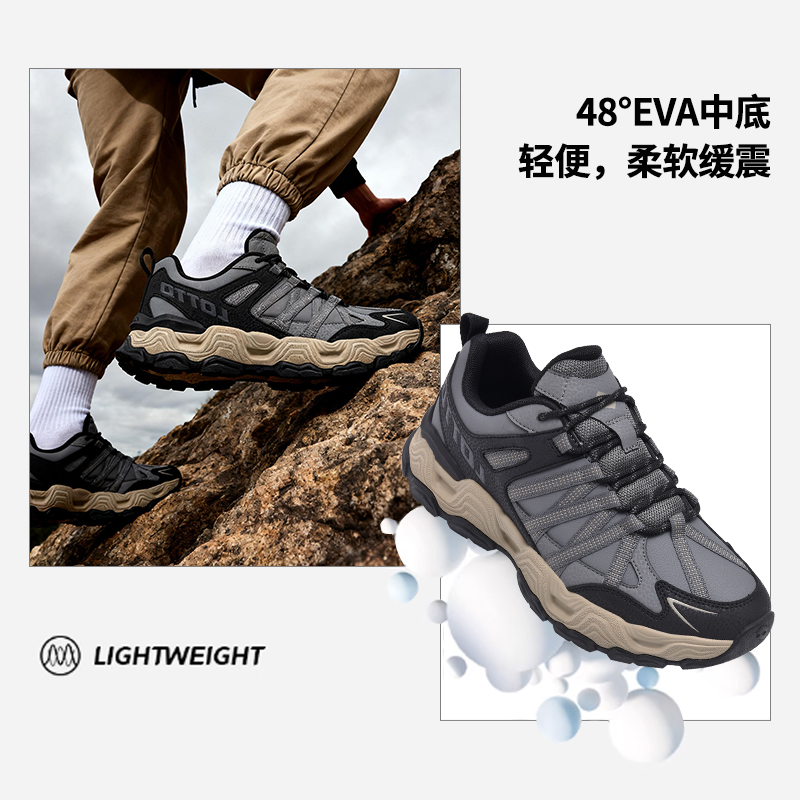 乐途男鞋户外运动鞋秋季新款减震皮面学生跑步鞋厚底防滑休闲鞋女