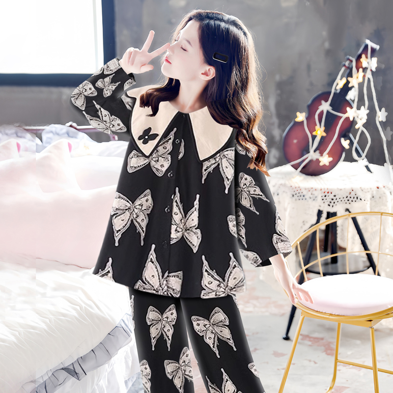 睡衣女童春秋款长袖纯棉可外穿甜美夏季新款家居服娃娃领两件套