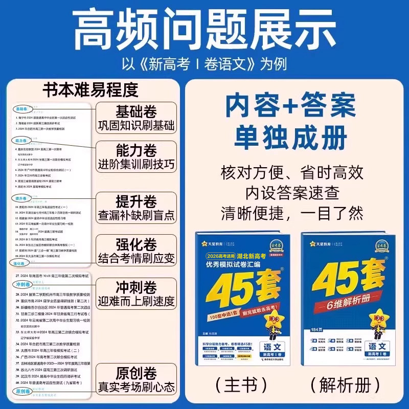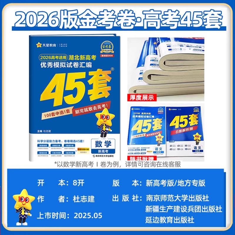 湖北专版】天星45套金考卷2026版高考45套英语数学语文物理化学生物政治历史地理全套高三一二轮总复习2025模拟试卷汇编天星高中