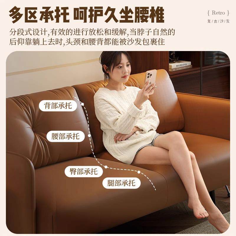 小户型皮艺沙发复古客厅双人沙发棕色现代简约公寓意式猫抓皮沙发