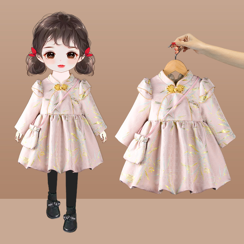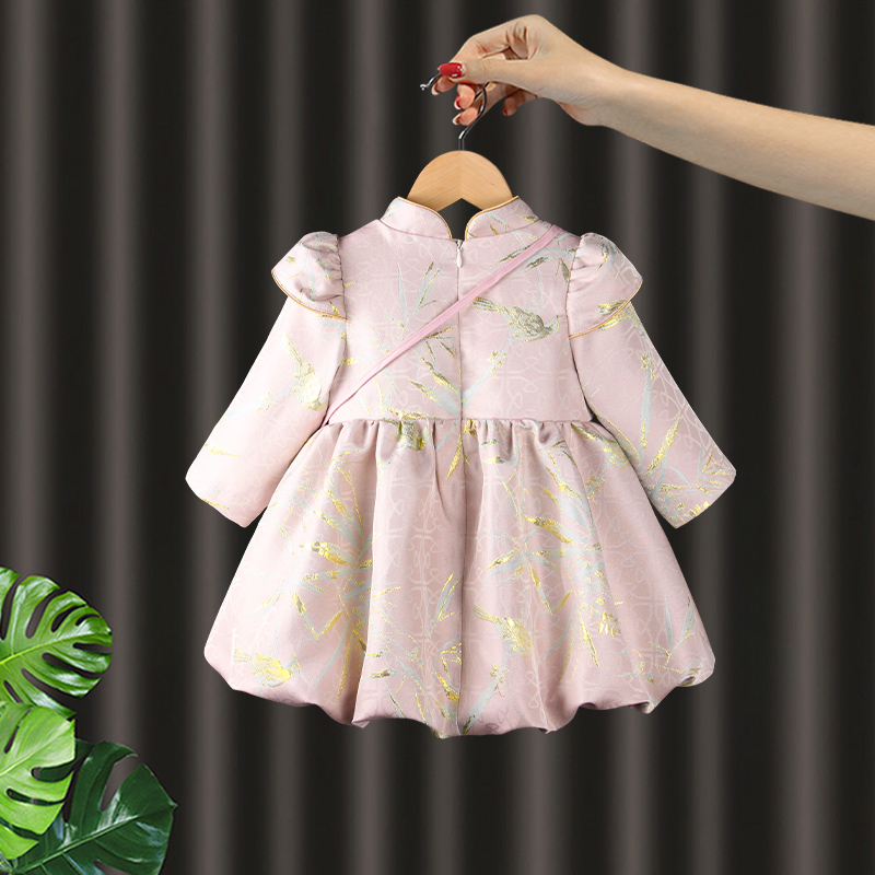 女童唐装中式女宝宝一周岁宴生日抓周旗袍礼服儿童公主连身裙秋季