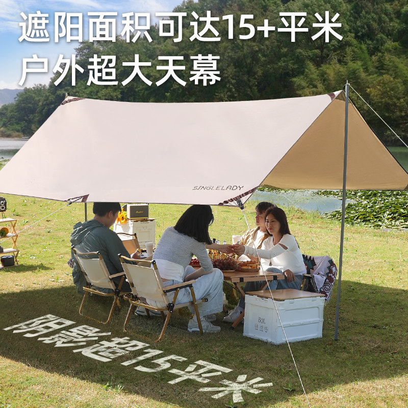 天幕帐篷户外便携式防晒凃银六角大型幕布露营遮阳棚野营超轻凉棚