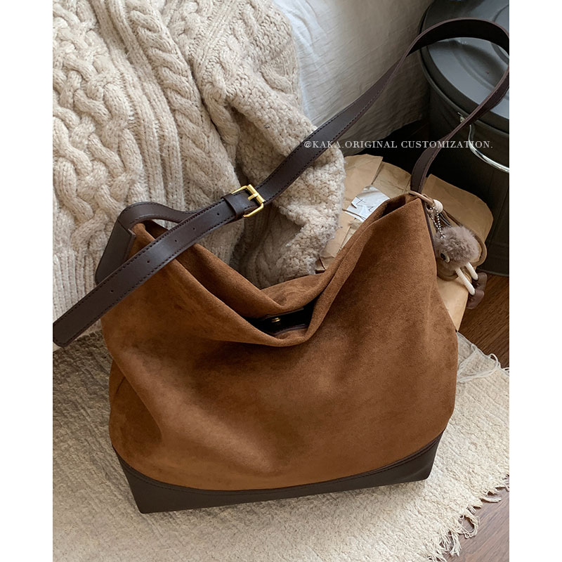 复古麂皮绒大容量斜挎包包女2025新款潮秋冬韩版托特包单肩腋下包