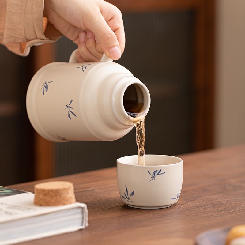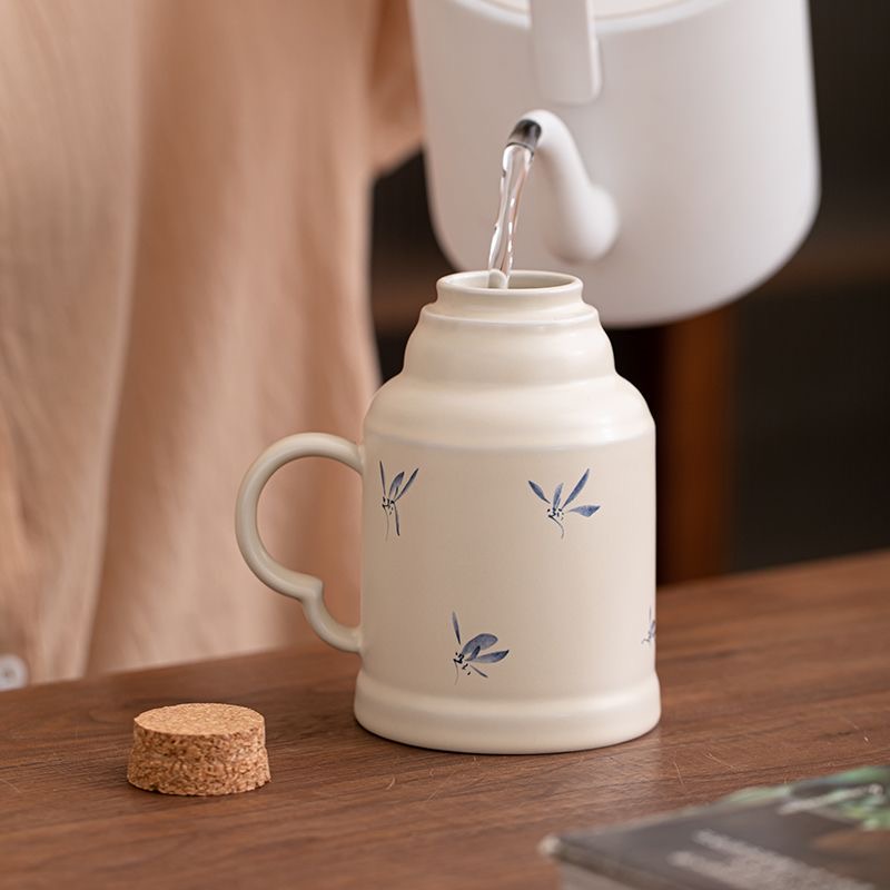 蝴蝶兰水壶泡茶壶茶杯大容量马克杯闷茶壶陶瓷带盖办公室喝水杯