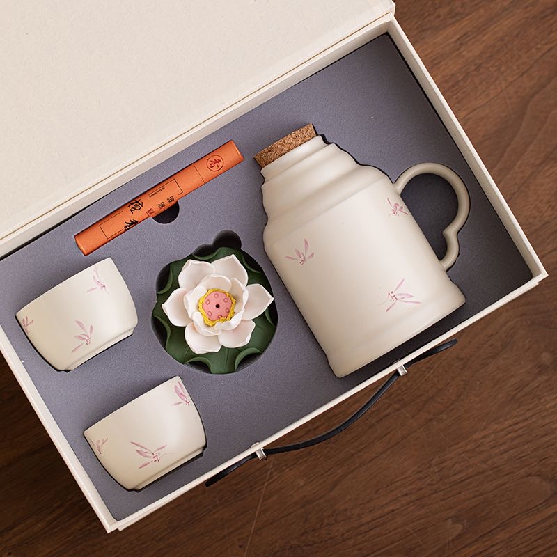 蝴蝶兰泡茶壶茶杯马克杯陶瓷带盖