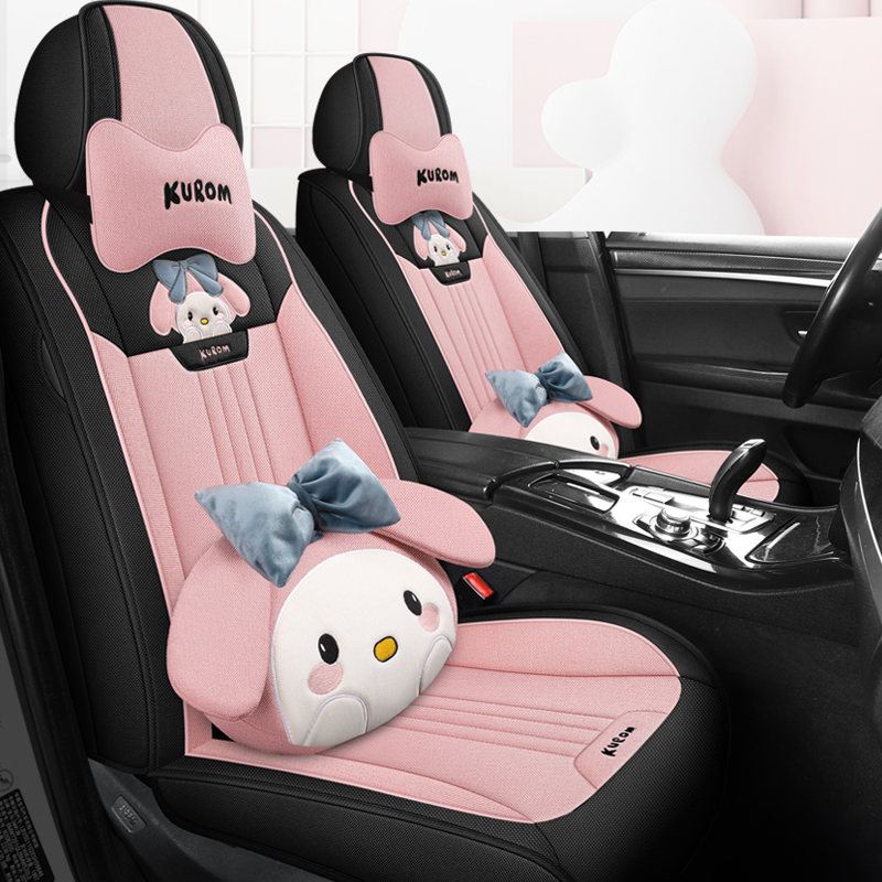 新款汽车坐垫卡通通用四季全包围座套女神款座椅套亚麻女专用座垫